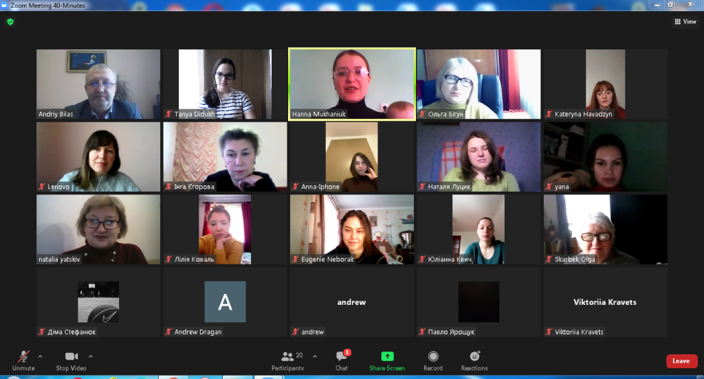 Практично-діяльнісне і студентоцентричне спрямування воркшопу забезпечив майстер-клас Ганни Муханюк, учительки французької мови Лазещинського ЗЗСО І-ІІІ ступенів Ясінянської селищної ради Рахівського району Закарпатської області, лауреатки (IIІ місце) обласного туру всеукраїнського конкурсу «Учитель року – 2019» (номінація «Французька мова»), свого часу випускниці факультету іноземних мов ОП «Французька мова і література». Онлайн-технології дозволили дистанційно реалізувати спостереження за інтерактивним застосуванням нестандартних видів роботи мотиваційного навчання.