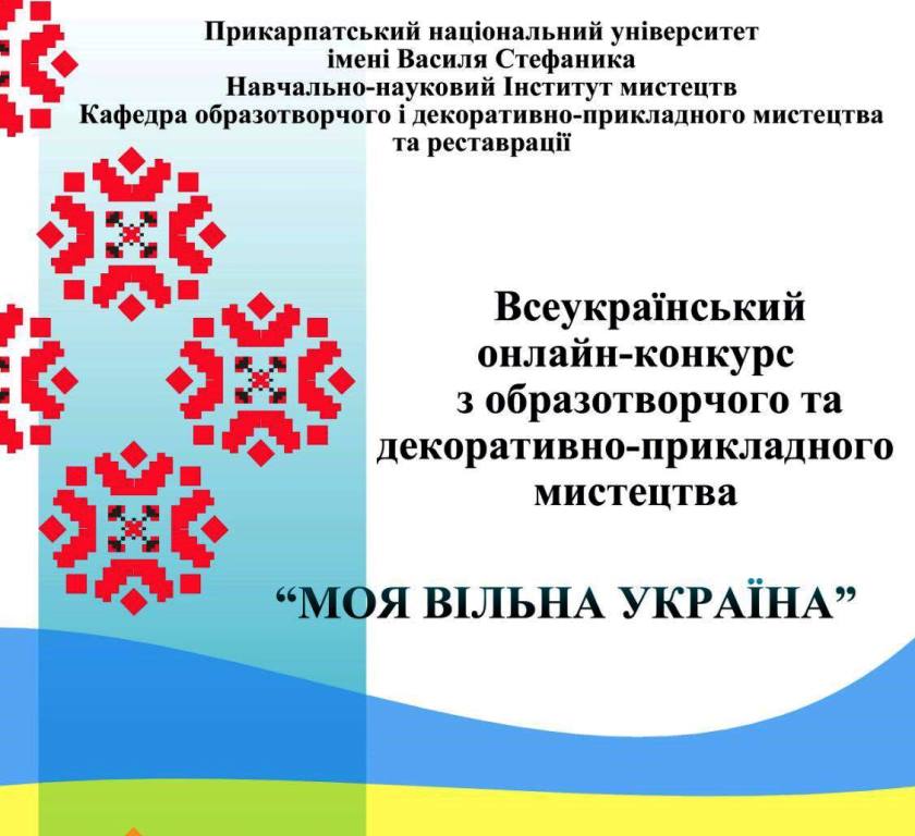 З 1 листопада 2022 року розпочато прийом творчих робіт на Всеукраїнський онлайн-конкурс з образотворчого і декоративно-прикладного мистецтва «Моя вільна Україна», який проводиться на базі кафедри образотворчого і декоративно-прикладного мистецтва та реставрації Навчально-наукового інституту мистецтв Прикарпатського національного університету імені Василя Стефаника.