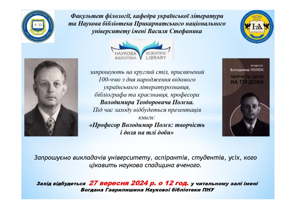 Відбудеться круглий стіл, присвячений 100-річчю з дня народження професора Володимира Полєка!