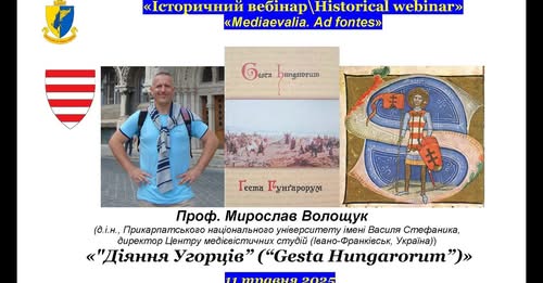 Пропонуємо Вашій увазі запис, здійснений 13 Травня 2025 р. на платформі Історичний вебінар\Historical webinar від Wladyslaw Jatcenko та присвячений україномовному виданню знаменитого середньовічного твору “Діяння Угрів”, наклад якого побачив світ 2024-го року (Gesta Hungarorum (Ґеста Гунгарорум). Оповідь Анонімуса про прихід угорців у Паннонію / упор. і пер. Кароль Найпавер, Мирослав Волощук. Ужгород : Карпати, 2024. 183 с.)