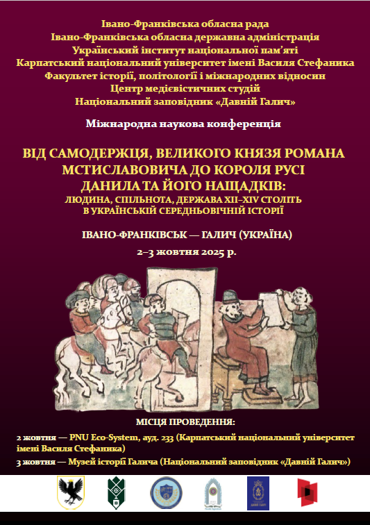 Міжнародна наукова конференція “ВІД САМОДЕРЖЦЯ, ВЕЛИКОГО КНЯЗЯ РОМАНА МСТИСЛАВОВИЧА ДО КОРОЛЯ РУСІ ДАНИЛА ТА ЙОГО НАЩАДКІВ: ЛЮДИНА, СПІЛЬНОТА, ДЕРЖАВА ХІІ–XIV СТОЛІТЬ В УКРАЇНСЬКІЙ СЕРЕДНЬОВІЧНІЙ ІСТОРІЇ”