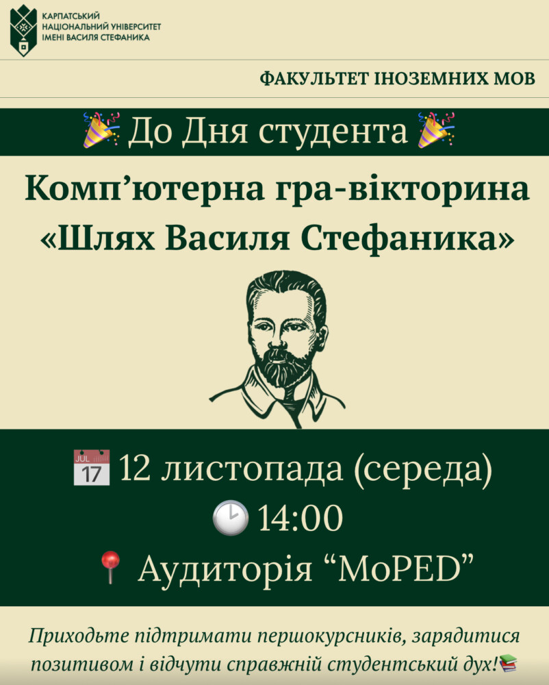 6 листопада на Факультеті філології відбувся І етап Міжнародного конкурсу з української мови ім. Петра Яцика. Його проводять щороку з метою утвердження державного статусу української мови, піднесення її престижу серед української молоді, удосконалення знань мовних норм та виховання поваги до Читати далі