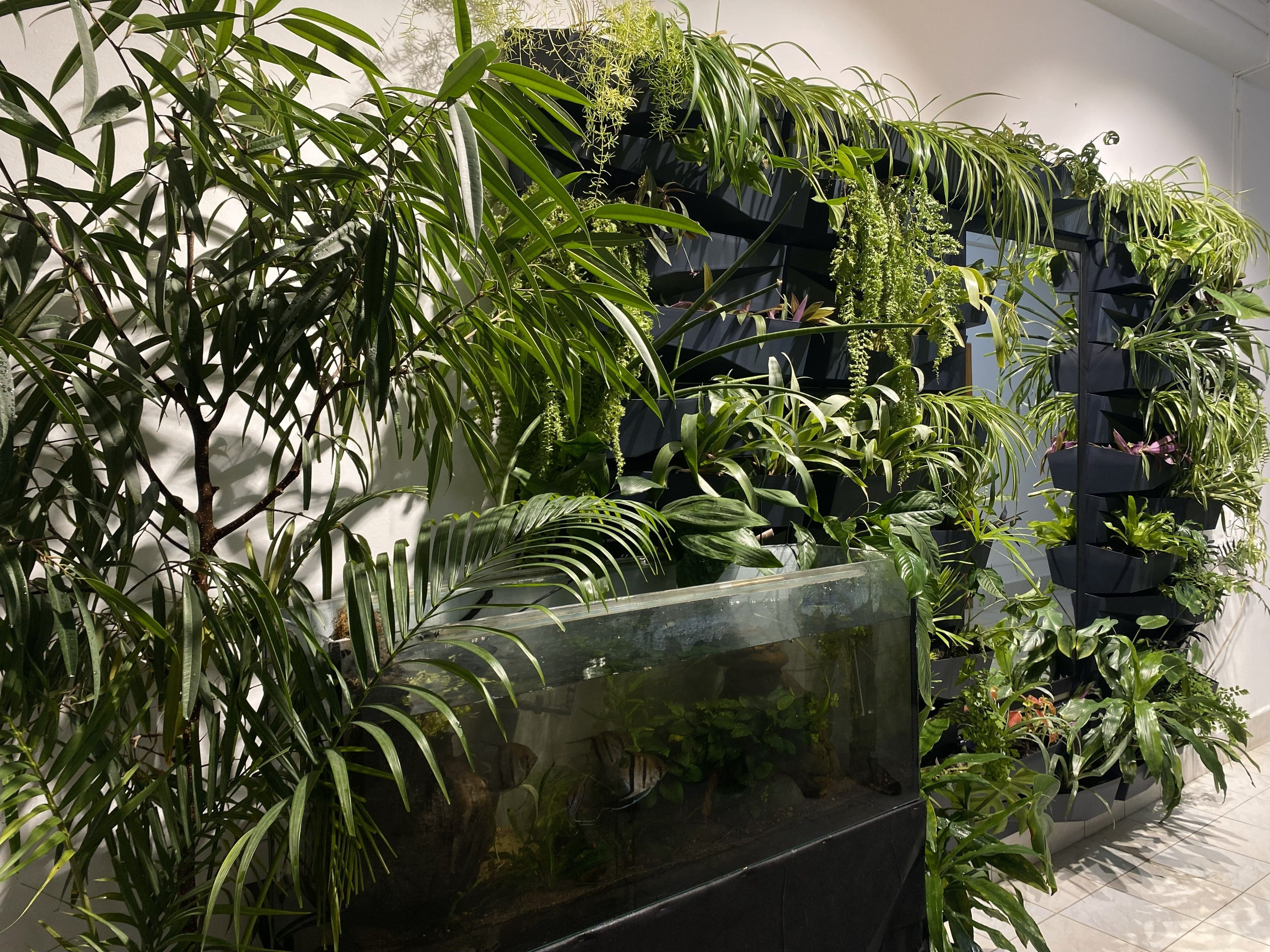 «Зелена стіна знань» – це значно більше, ніж елемент інтер’єру. Це жива, складна екосистема: біотехнологічний вертикальний сад, місце релаксації й психологічного розвантаження, простір для зупинки й відновлення, фотозона зрештою. Вирощені студентами рослини працюють як природний біофільтр – очищують і зволожують повітря, знижують рівень шуму, формують сприятливий мікроклімат для навчання та спілкування. Дзеркало й акваріум, інтегровані у структуру стіни, візуально розширюють простір і тонко символізують гармонію між людиною та природою. А QR-коди перетворюють споглядання на пізнання – кожен охочий може дізнатися більше про рослини, їхні властивості й історію самого проєкту.