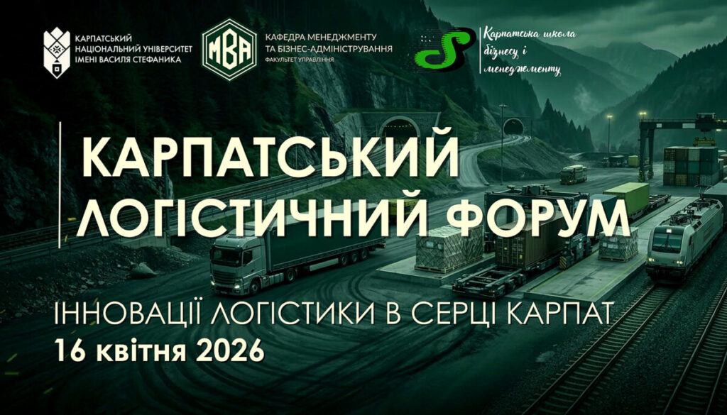 Кафедра менеджменту та бізнес-адміністрування факультету управління КНУВС за сприянням Карпатської школи бізнесу і менеджменту запрошує на Карпатський логістичний форум, який відбудеться 16 квітня 2026 року в місті Івано-Франківськ за адресою: вул. Шевченка, 57, ауд. 233.